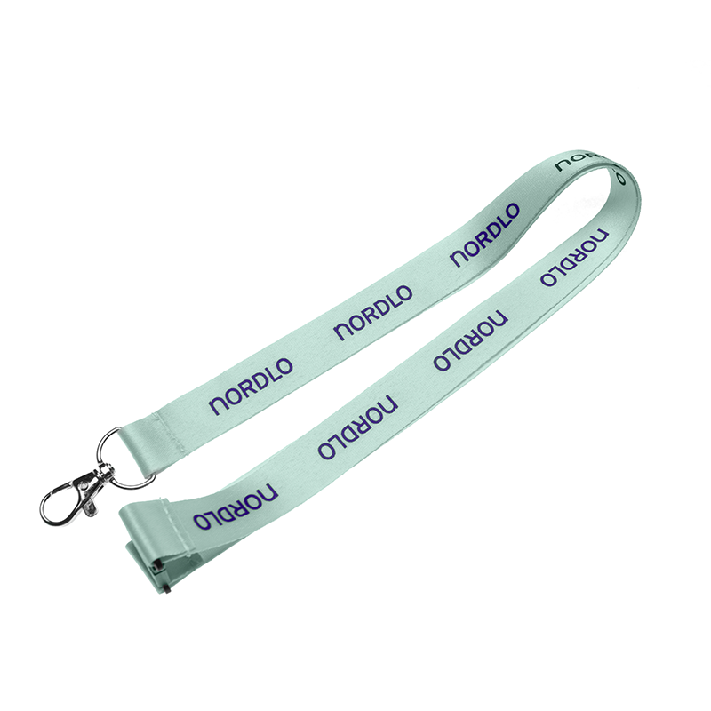 Nyckelband i polyester, 20mm med karbinhake och säkerhetsspänne i nacken.